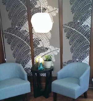 Decisions are often best made in an environment when the decision maker is not stressed. Recent studies indicate that nature often reduces our stress when we are making these important decisions. Rather than a wall of diplomas demonstrating credentials that are easily reviewed in online biographies, we installed a floor to ceiling mural using pre-pasted, removable wallpaper.